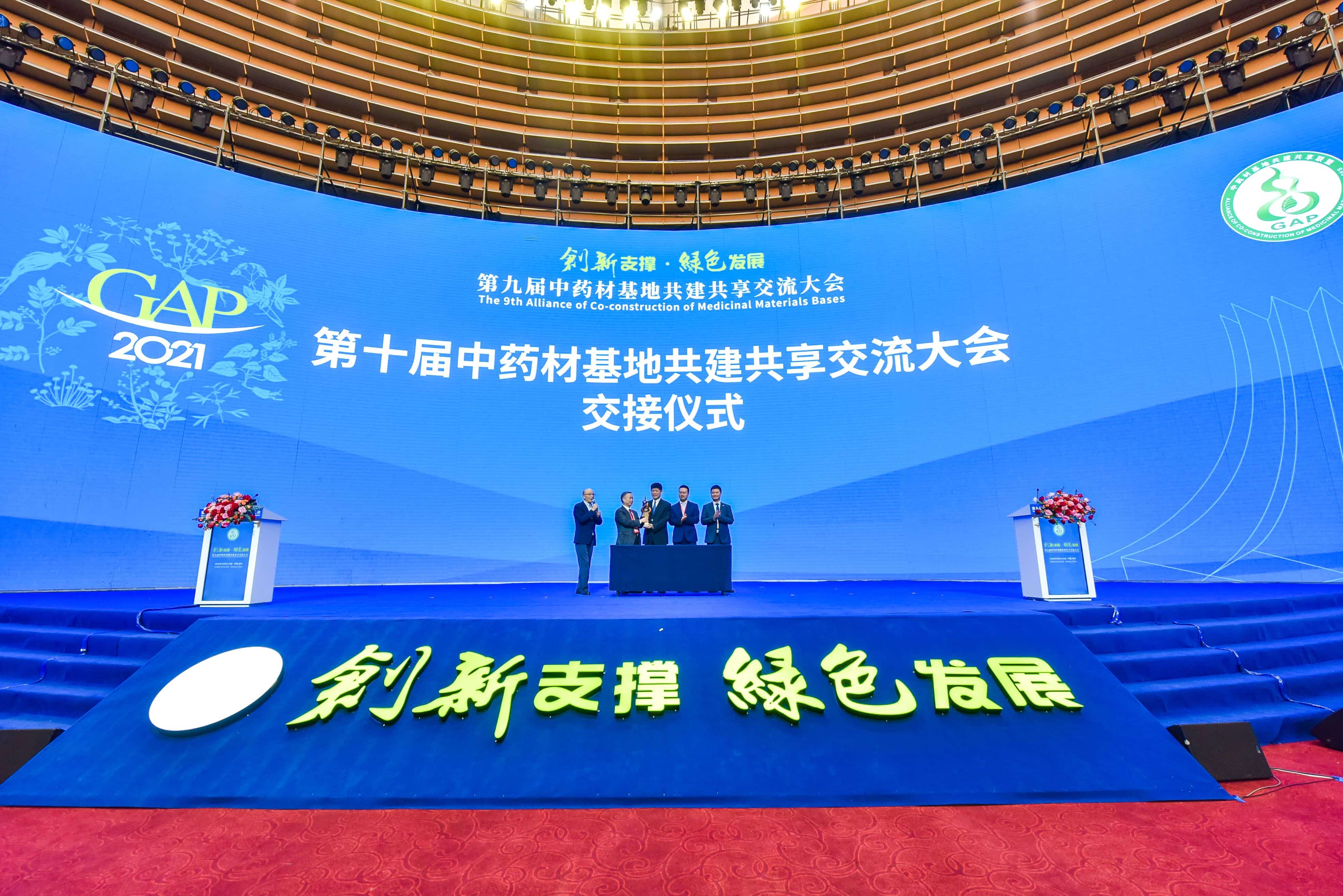 在闭幕式的最后一项环节,由上海中药行业协会会长、创新联盟副理事长杨弘主持了简单而隆重的轮值主席交接仪式,公司朱朝阳董事长在全体与会嘉宾的见证下,将联盟标志物颁与九州通九信中药集团总经理骆维,2022年联盟交流大会将在武汉召开。