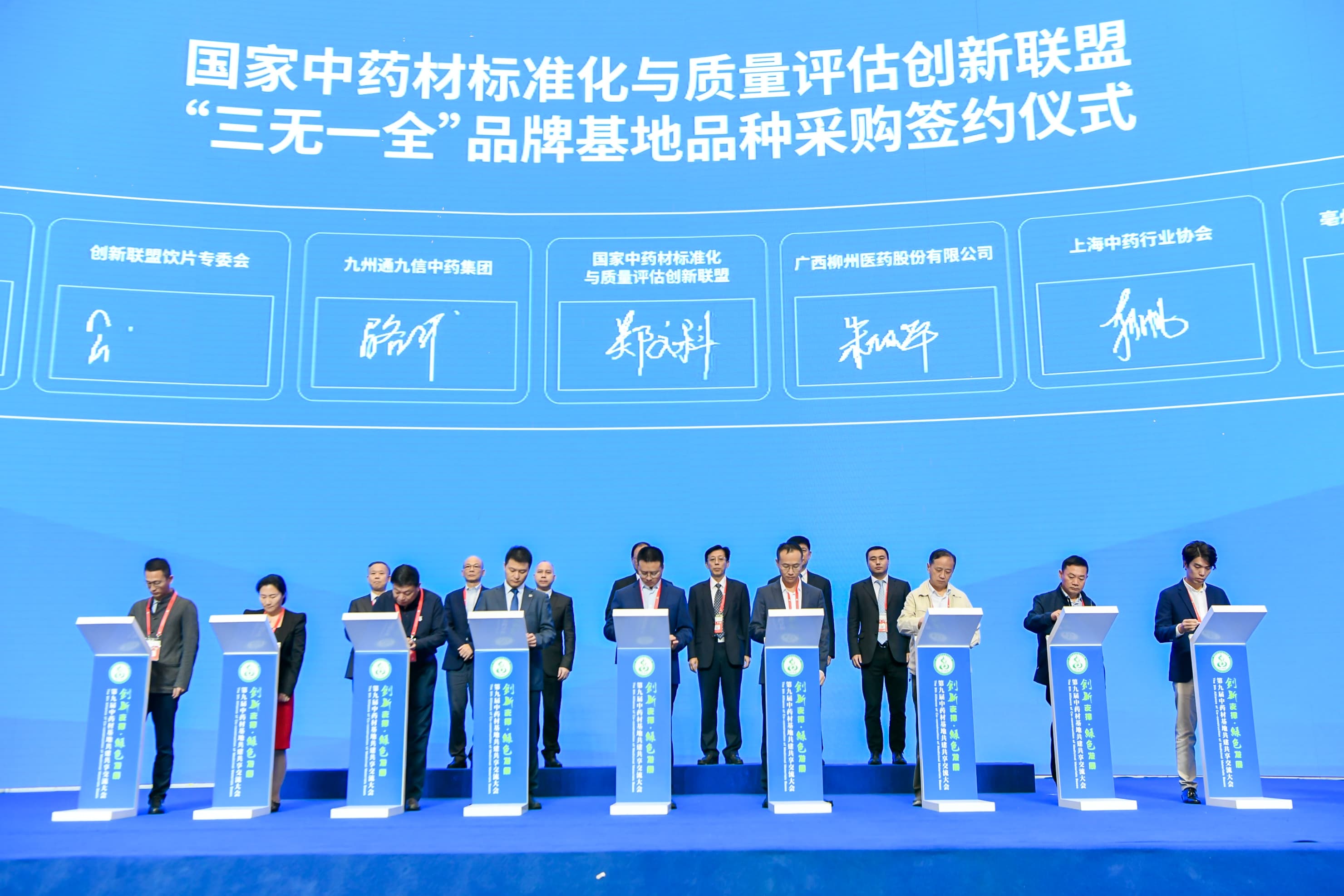 闭幕式上,举办了大会项目签约仪式。国家中药材标准化与质量评估创新联盟、广西中医药管理局、广西柳州医药股份有限公司等区内外21家单位、企业间签订7个项目合约,内容涉及与中医药事业发展相关的金融服务、国际供应链服务、中药材基地与“定制药园”合作共建、种苗繁育、康养文旅、产品研发及“三无一全”品牌基地品种采购等。
