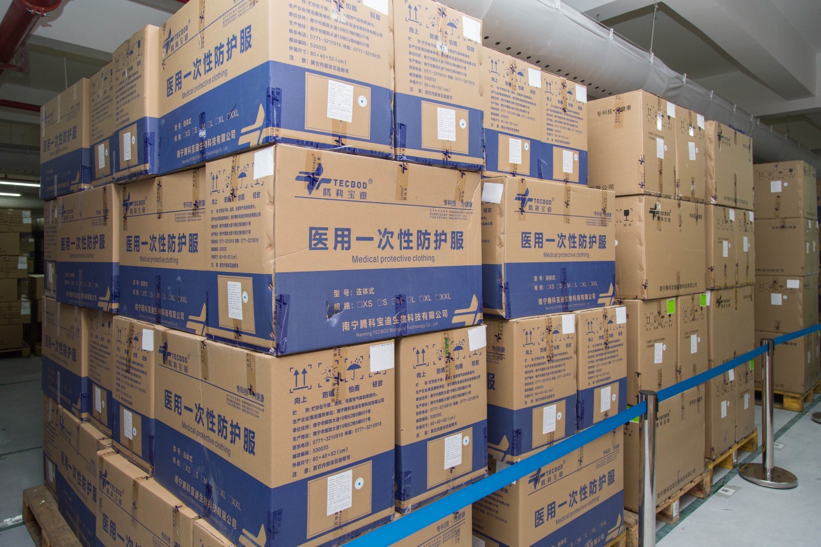 公司接到自治区医疗物资保障组应急物资调拨指令,要求12月24日8:00前紧急支援一批防疫物资到防城港。接到指令后5分钟内公司就启动应急配送方案,物流中心、销售、采购等部门抽调专人负责,南宁、柳州、桂林等仓库联动调配库存和车辆,组织出库工作。