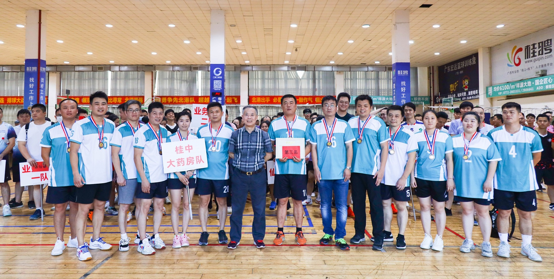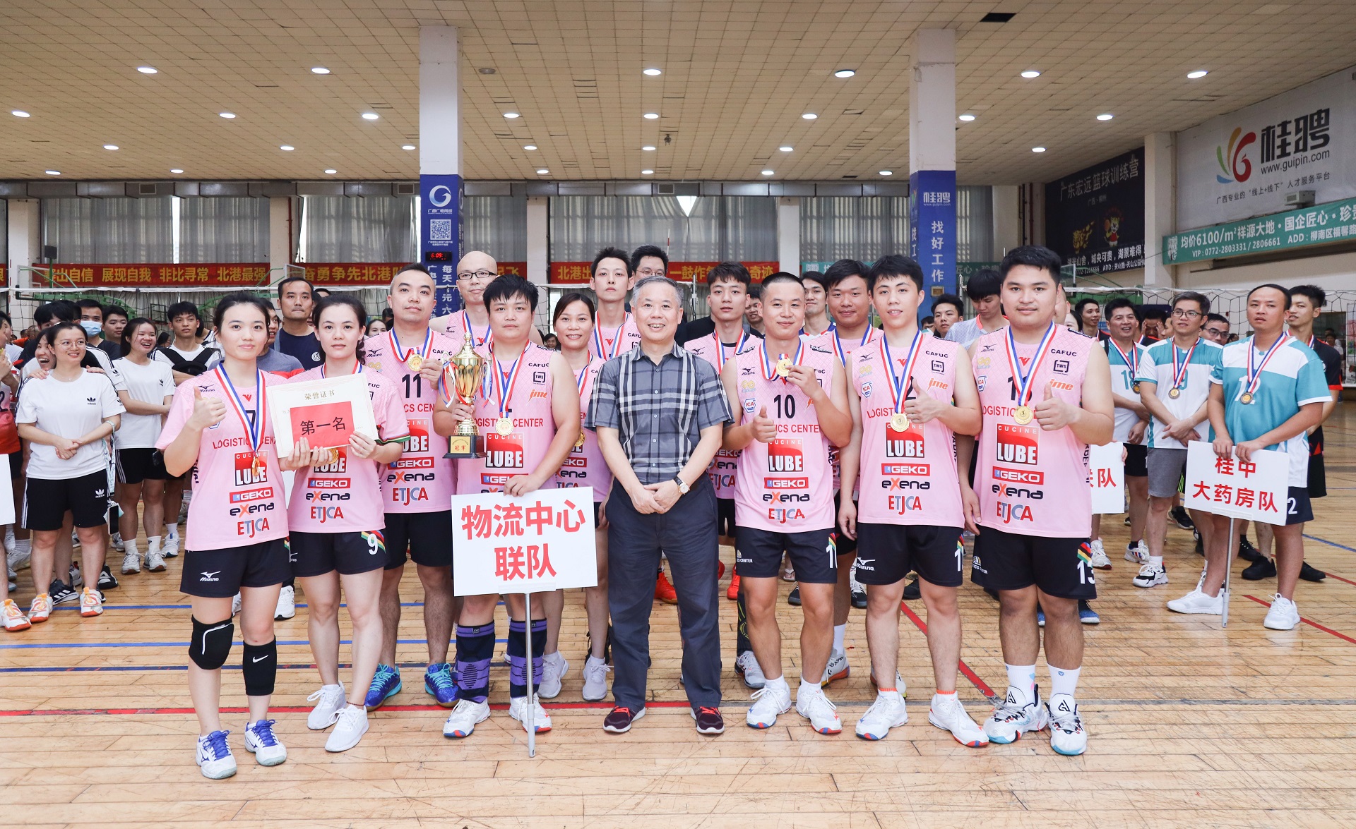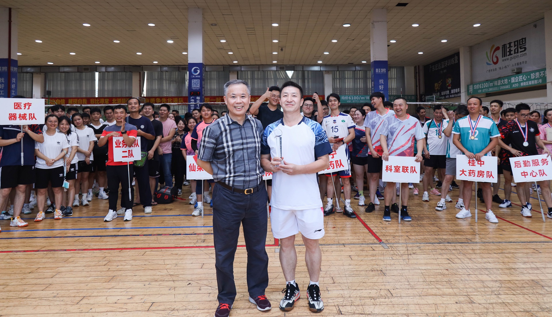 下午,集团党委书记、董事长朱朝阳到场观看比赛,经过近6个小时的艰苦鏖战,随着终场哨声响起,本次比赛完美落下了帷幕。通过激烈角逐,最终物流中心联队获得比赛冠军,后勤服务中心队、桂中大药房队分获亚军、季军。作为柳药集团体育竞技活动的传统赛事,职工气排球赛已举办了十余届,今年特别设置了“柳药集团职工气排球赛荣耀球员奖”,此奖项颁发给一直征战历届气排球赛,在赛场上披荆斩棘、表现突出的球员,集团副总经理唐贤荣获得该奖。集团董事长朱朝阳为获奖队伍、荣耀球员颁奖。