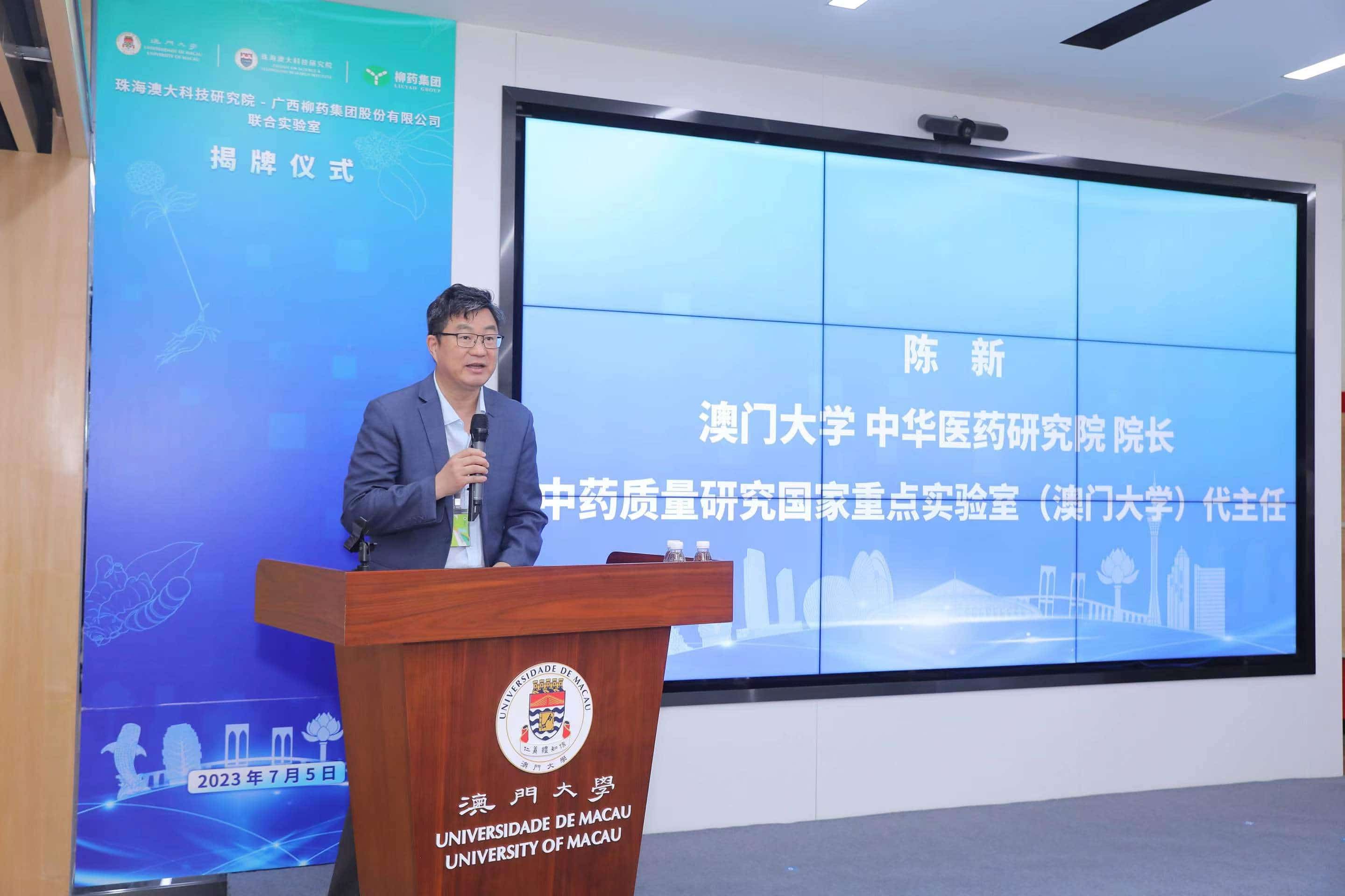 仪式上,澳门大学中华医药研究院院长、中药质量研究国家重点实验室(澳门大学)代主任陈新,澳门大学研究服务及知识转移办公室主任、珠海澳大科技研究院副院长王春明,柳药集团董事长朱朝阳等分别致辞。
